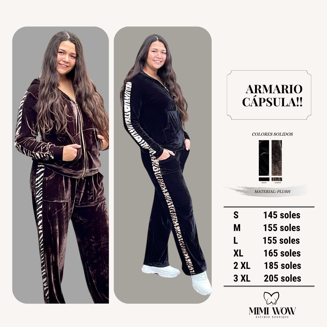 El Conjunto Catalina está confeccionado en plush de color entero, con cierre frontal que lo hace práctico y estiloso a la vez.