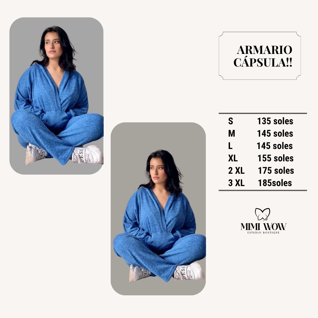 “El conjunto que combina abrigo, estilo y ese detalle que marca la diferencia: cruzado, con capucha y full comfy.”