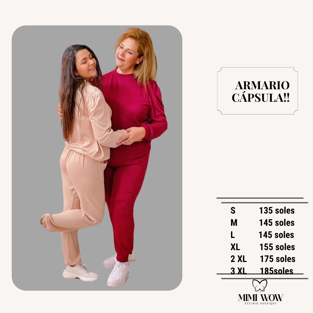 Incluye polera con mangas ligeramente abullonadas y pantalón a juego, ideal para un look invernal