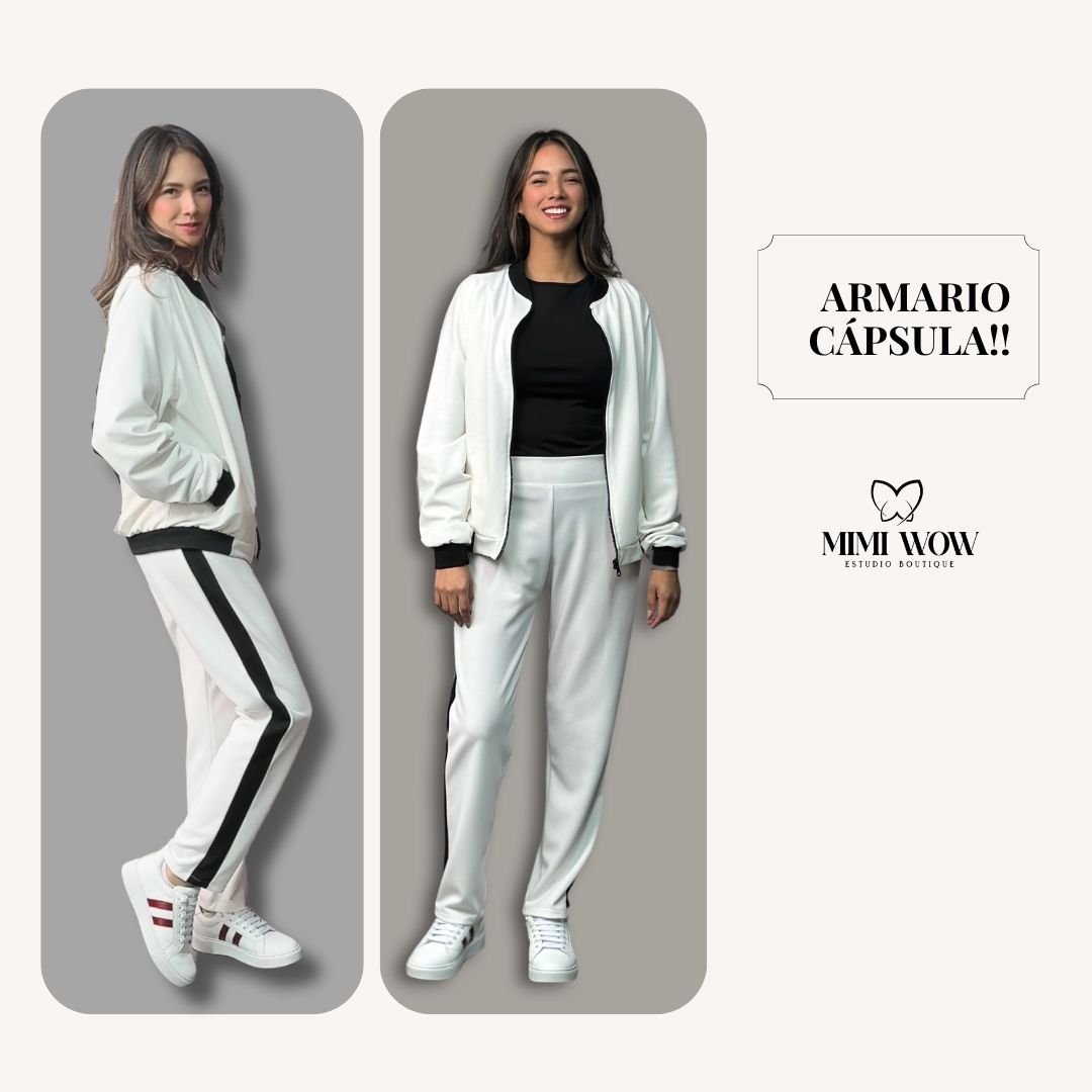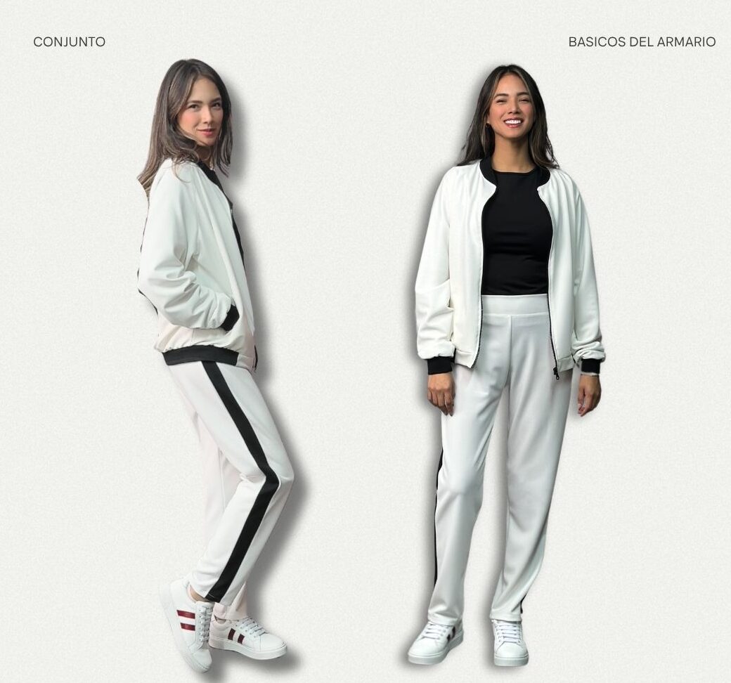 El Conjunto Stef está confeccionado en material scuba, con una casaca de cierre estructurada y un pantalón de corte limpio, ideal para looks urbanos, de oficina o eventos casuales con presencia.
