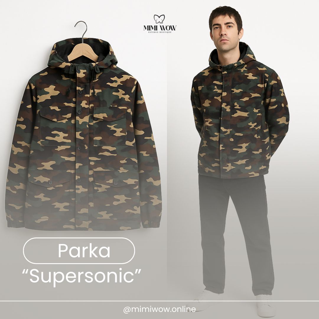 Parka impermeable/cortavientos de tela nova corrugada, con cierre, capucha amplia y con pitas ajustables, 4 bolsillos amplios en la parte delantera con pega pega y puños ajustables con pega pega.