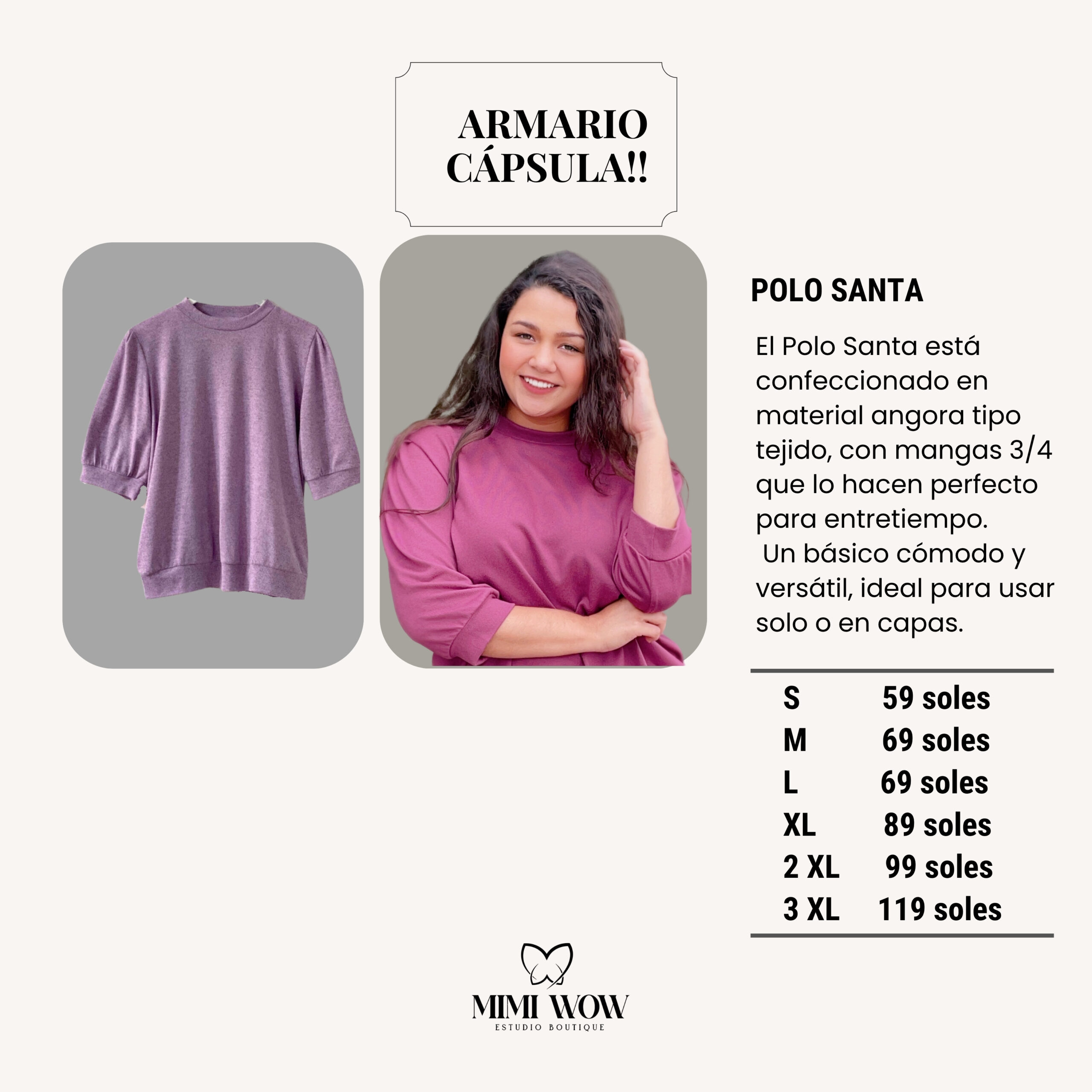 El Polo Santa está confeccionado en material angora tipo tejido, con mangas 3/4 que lo hacen perfecto para entretiempo.
