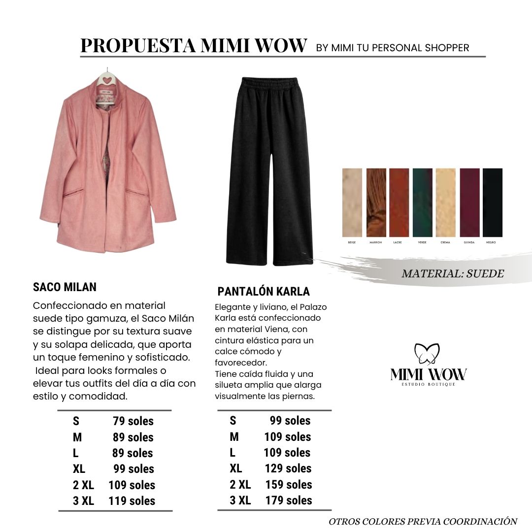 Confeccionado en material suede tipo gamuza, el Saco Milán se distingue por su textura suave y su solapa delicada, que aporta un toque femenino y sofisticado.